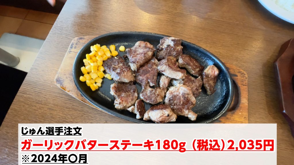 じゅん選手の選択:新メニュー「ガーリックバターステーキ180g(税込2,035円)」