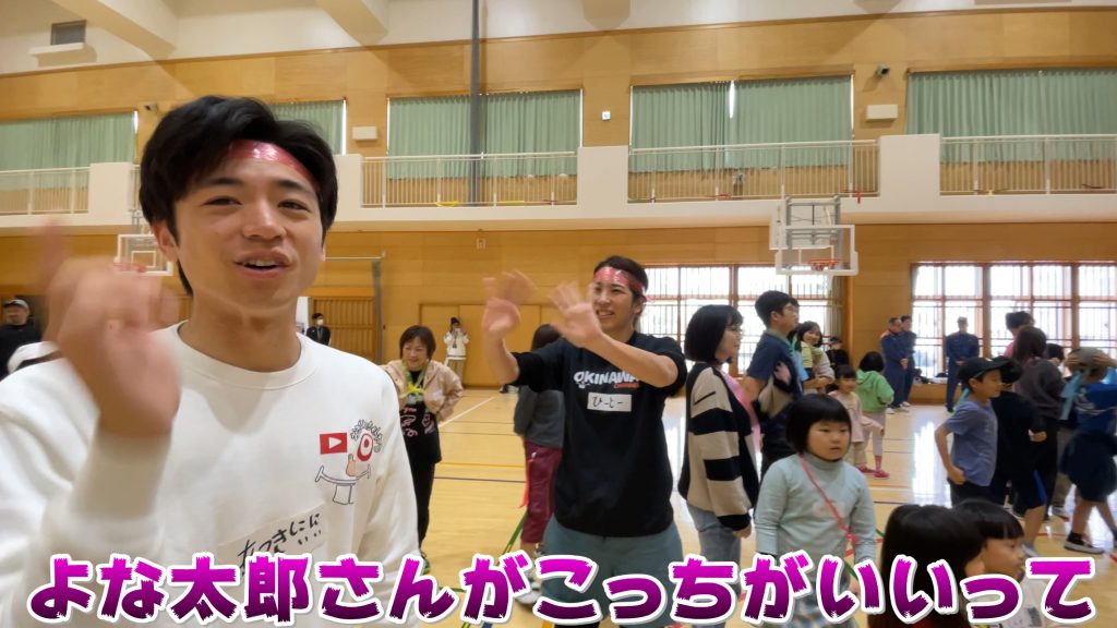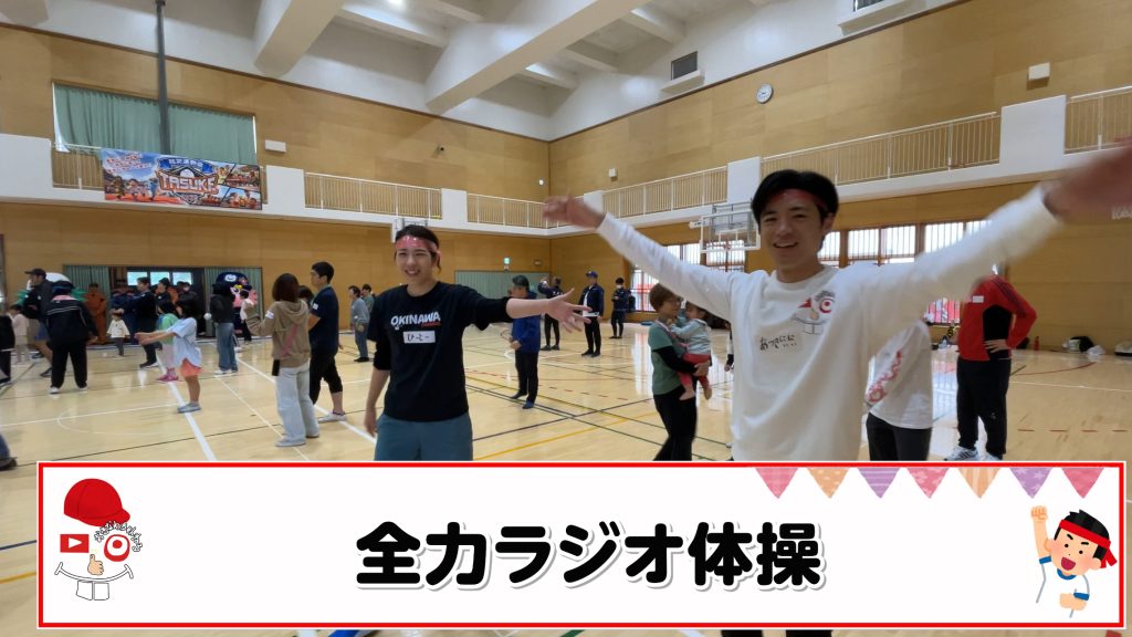 まずは全員参加の「全力ラジオ体操」でウォーミングアップ。しかし、早くもあつきにいにいの独特な動きに「源河さんに負けてるよ!」とよな太郎からのコミカルなツッコミが飛び出します。早くもチーム内での愉快な小競り合いが勃発し、会場は笑いに包まれます。