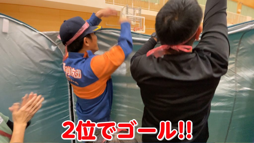 そして最後の関門、簡易テントの中に全員で入るというミッションでは、ひーとーが上と下を間違えるという天然ぶりを発揮しつつも、見事赤チームは2位でゴールイン!