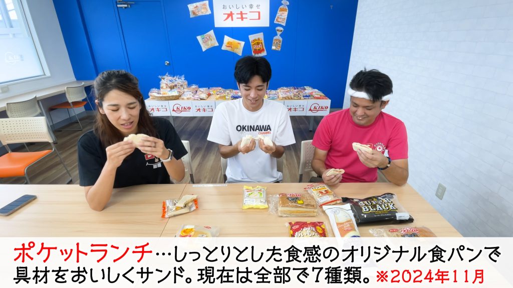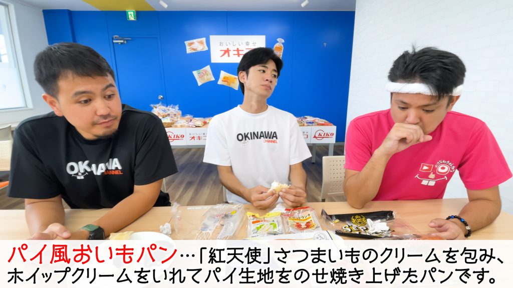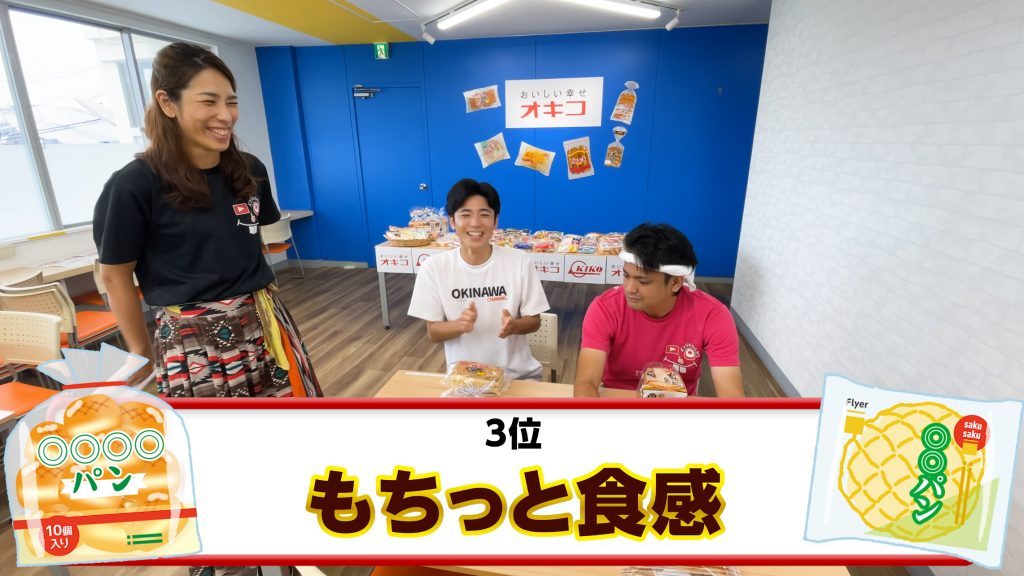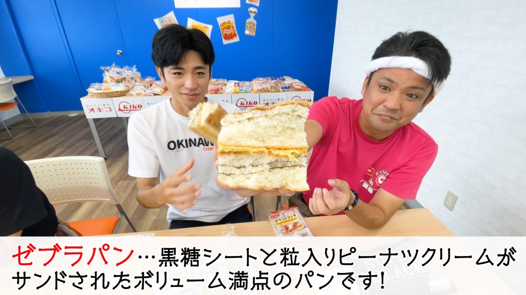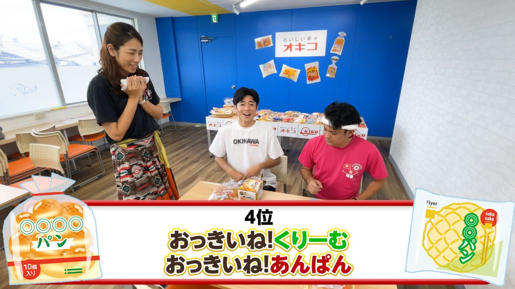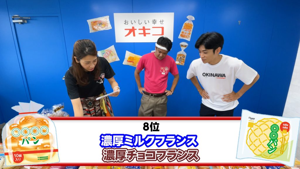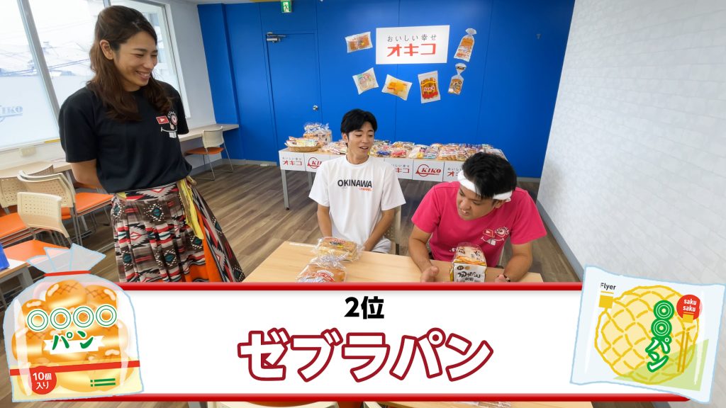 普段からオキコパンを愛用している「ひーとー」と「あつきにいにい」の二人が、オキコパンの出荷数ランキングを大調査。沖縄でしか手に入らないパンから、全国的にも珍しいユニークなパンまで、その豊富なラインナップに驚かれていました。
