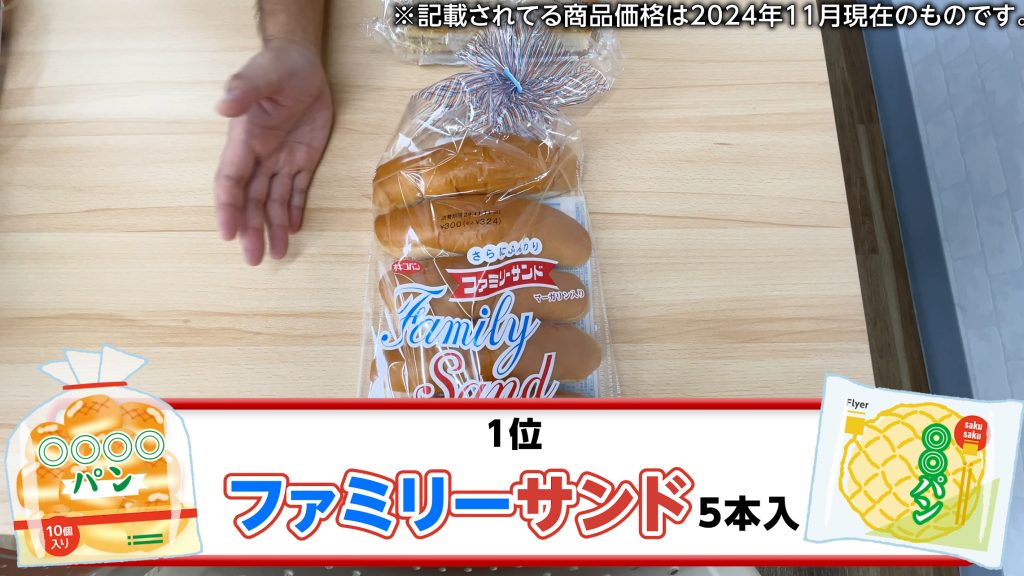 栄えある第1位はファミリーサンド!オキコパンを長年愛用する方々はもちろん、子どもから大人まで、家族みんなで楽しめる定番中の定番パンです。