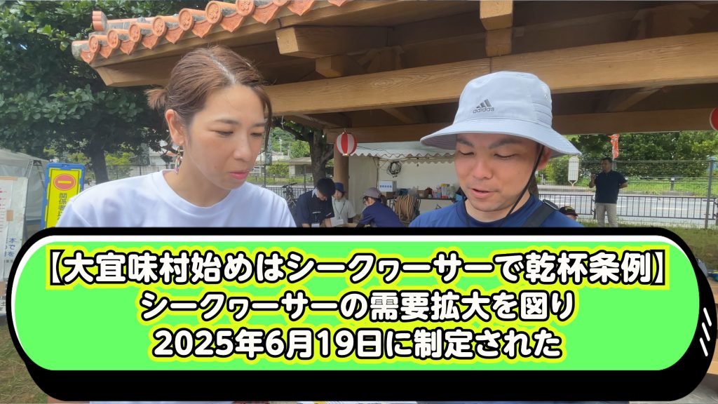 動画の冒頭でも紹介された通り、大宜味村では2025年6月19日に「大宜味村はじめはシークワーサーで乾杯条例」が制定されました。これは特産品のシークワーサーの需要拡大と、村のさらなる発展を目指すもので、村内のイベントではシークワーサーが入った飲み物で乾杯することが推奨されています。お酒でもジュースでも、シークワーサーが入っていればOK!今回の夏まつりでも、来場者全員でシークワーサーで乾杯する、大宜味村ならではの温かいおもてなしがありました。