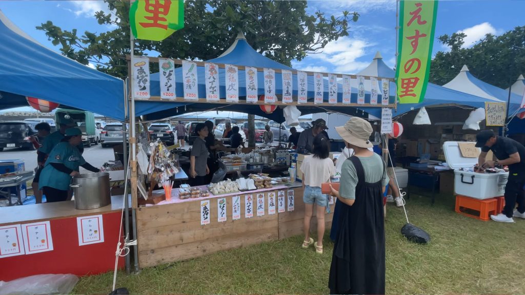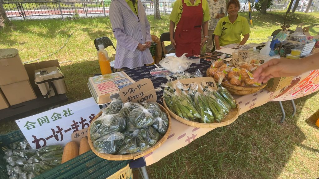 続いて訪れたのは、大宜味村の特産品を販売するブース。「わーけーまちや」というお店では、シークワーサーやオクラなどの新鮮な野菜、さらにはシークワーサーを使った加工品がずらりと並びます。シークワーサーの皮を使ったマーマレードやシロップは、お土産にもぴったりです。