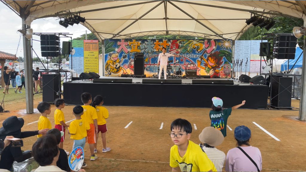 今回の夏まつりでは、多彩なステージイベントが繰り広げられました。オープニングを飾ったのは、あつきにいにいの母校である辺士名高校軽音部のライブ。さらに、チームアルディーテのダンスステージや、地元大宜味こども園の園児たちによる可愛らしいステージも開催され、会場は温かい拍手に包まれました。
