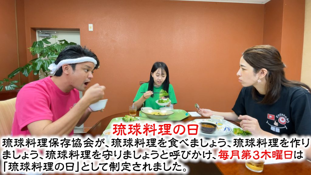 OIC食堂では、海外の多国籍料理だけでなく、沖縄のルーツを大切にする取り組みも行われています。実は、毎月第3木曜日が「琉球料理の日」として制定されており、沖縄の伝統料理も提供されるんです。琉球料理保存協会が、「琉球料理を食べましょう、琉球料理を作りましょう、琉球料理を守りましょう」と呼びかけ、沖縄県で定められたこの特別な日には、普段とは一味違う沖縄の味覚を堪能することができます。