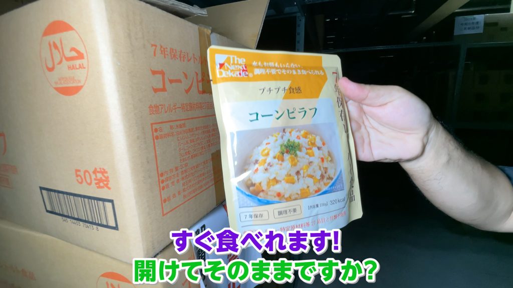 備蓄品は、保存期間が長いカレーや、水だけで食べられるアルファ米、調理不要の食品などが一般的です。
