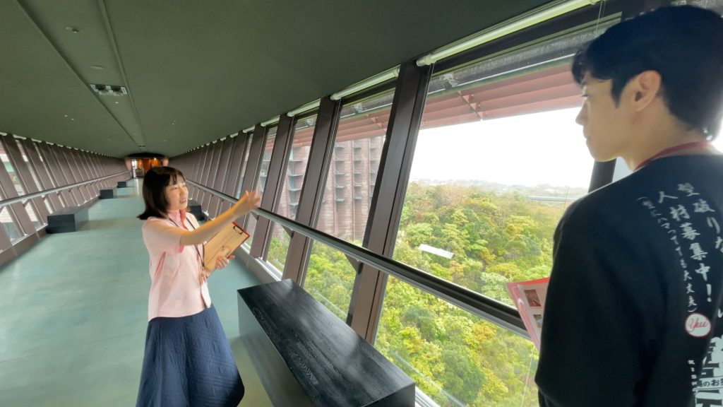 トンネルギャラリーを抜けると、目の前に広がるのは緑豊かな恩納村の森。そして、その森の上に架かる「スカイウォーク」と呼ばれる橋は、センター棟と第2研究棟を繋ぐ連絡通路です。