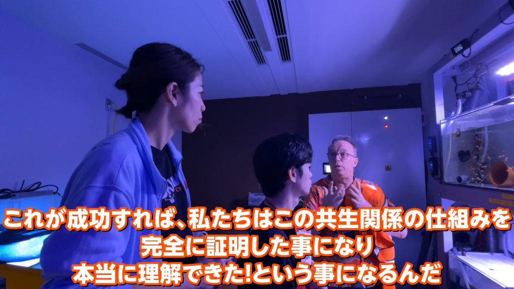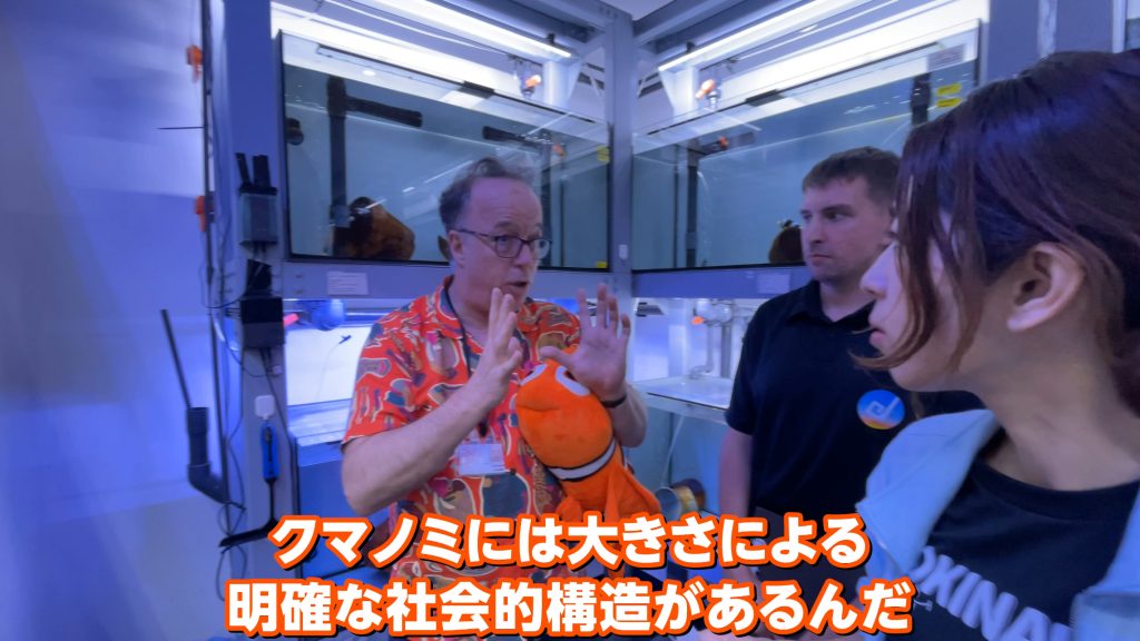 今回はカクレクマノミの研究をしているラウデッド教授に特別に見学させていただきました。