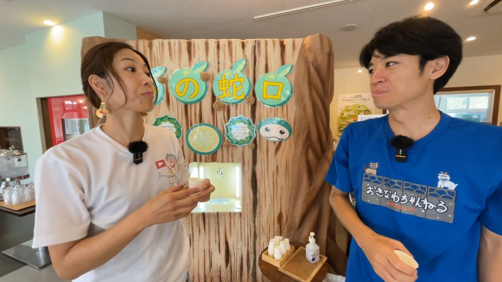 「ジュースが出る夢の蛇口!?」のコーナーでは、工場で絞られたばかりのシークワーサージュースが、まるで魔法のように蛇口から流れ出てきます。