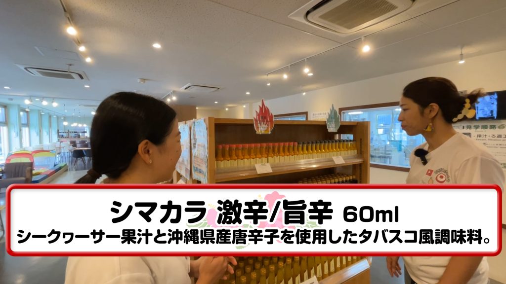 さらに、シークワーサー果汁と沖縄県産唐辛子をブレンドしたタバスコ風調味料「シマカラ(激辛/旨辛)」や、生姜のピリッとした辛味とシークワーサーの爽やかな酸味が楽しめる「シークワーサー生姜茶」など、ユニークなオリジナル商品も満載です。