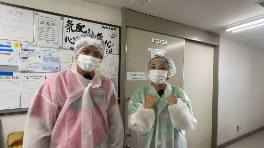 サン食品さんの工場に足を踏み入れた瞬間、まず私たちを驚かせたのは、工場内に漂う食欲をそそる出汁の香り!そして、その清潔感と広々とした空間は、まるでアトラクション施設のよう。期待に胸を膨らませて、いざ製造ラインへ!