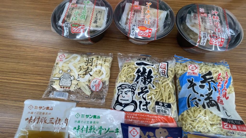 工場見学で見た、頑固一徹そば、羽衣うどん、本麺ソーキそばの袋麺は、スーパーやコンビニで手軽に購入できるサン食品さんの人気商品です。麺とスープがセットになっているので、ご家庭で簡単に本格的な沖縄そばの味を楽しむことができます。