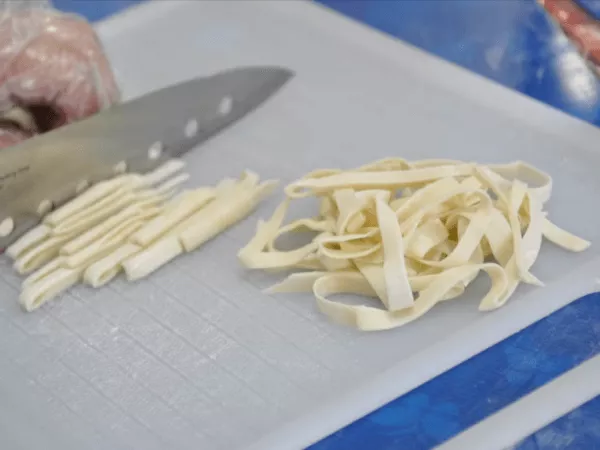 沖縄本島北部と橋でつながる屋我地島で、昔ながらのかん水を使って沖縄そばを手打ちしてみませんか?小麦粉とかん水を混ぜ、生地をしっかりと捏ねるところからスタート!手作りならではのモチモチ食感を楽しむため、少し寝かせてから麺をカットし、あなた自身の手で本格的な沖縄そばを仕上げます。