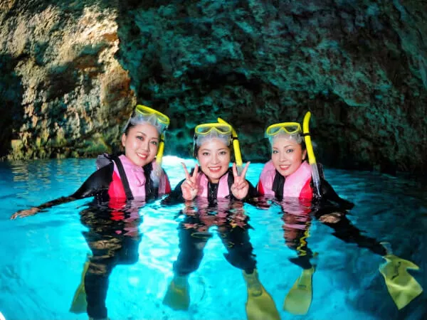 【沖縄県恩納村】青の洞窟へ行くシュノーケリング&シーウォークセットコース!Gopro無料レンタル付、豪華7大特典付