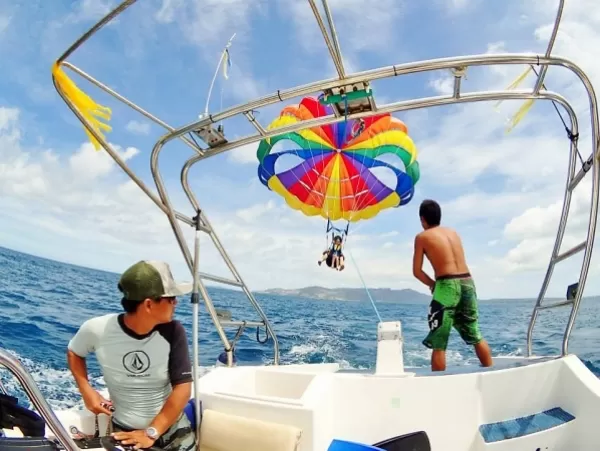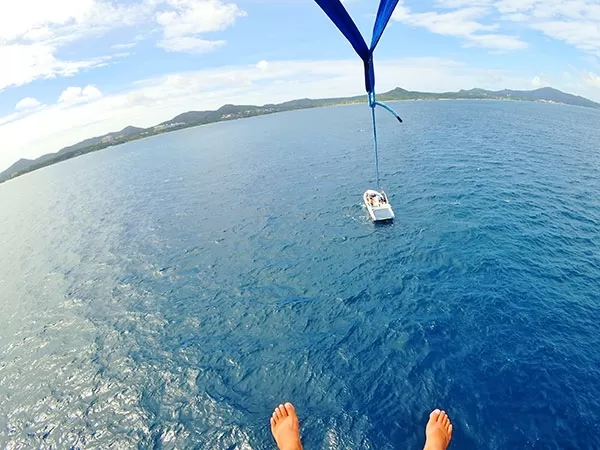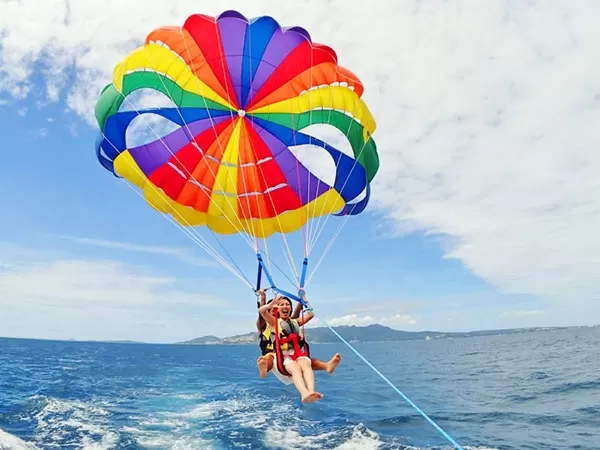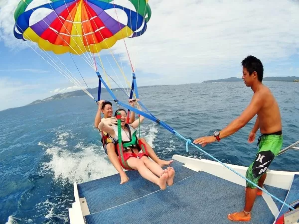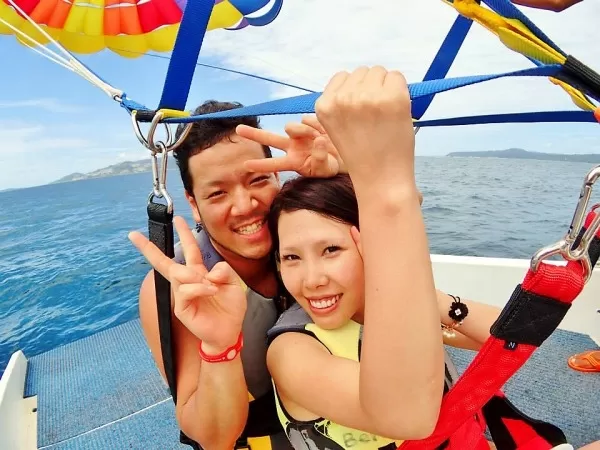 恩納村周辺 パラセーリング【許田IC約2分・名護ウィードビーチ開催・約1時間半・5歳以上・2名~★当日電話申込可】