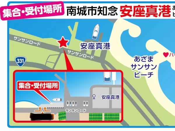 | 駐車場 | ※駐車場は安座真港の空いている駐車場をご利用ください。 |