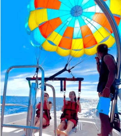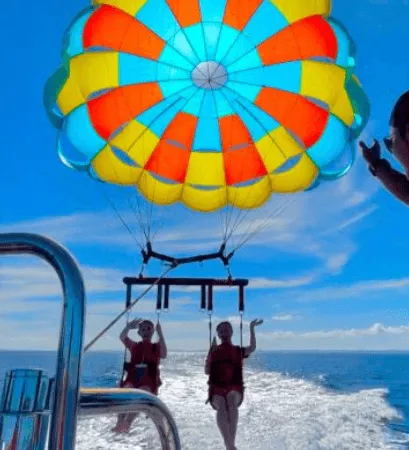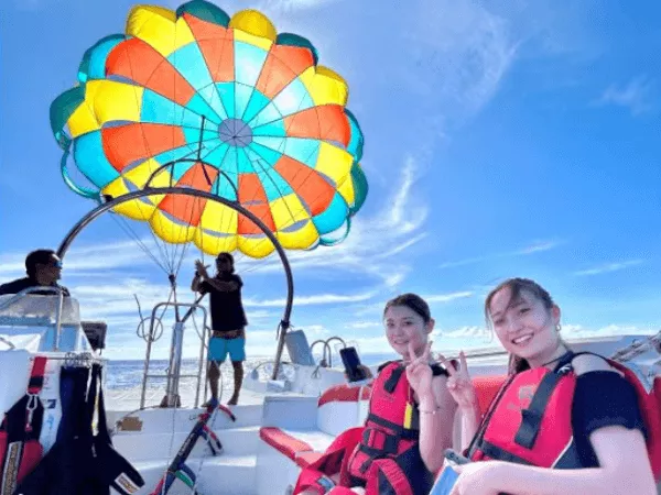 ・安全にパラセーリングを楽しんで頂く為に、当日の海況や、お客様の総体重でロープの長さが短くなることもございます。あらかじめご了承ください。