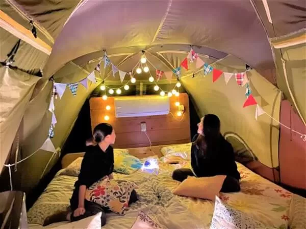 ・テント内に冷蔵庫、エアコン完備