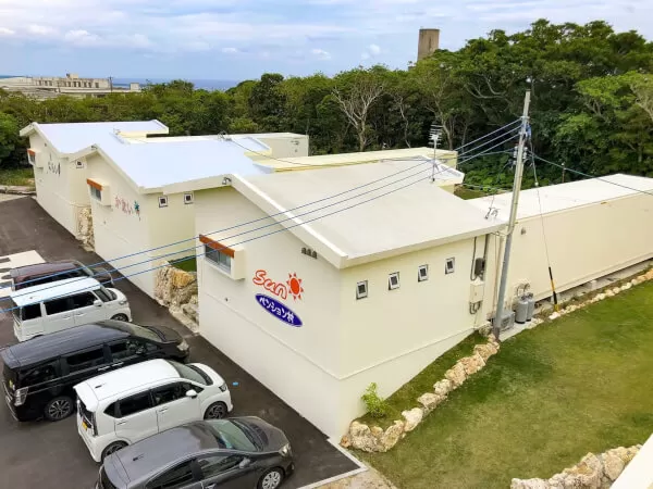 ペットと泊まれる宿泊施設!沖縄南部(南城市)の一棟貸切ペンション|ペンション村 山里 にらい。ペット衛生用品は必携になります。ファミリー、仲間同士、モアイ等、大人数で楽しめる1棟貸しのペンション6名迄¥21,000のリーズナブル価格|ペンション村 山里|コード:5977