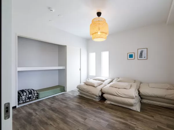 1階(休憩スペース/トイレ/バスルーム1/寝室)