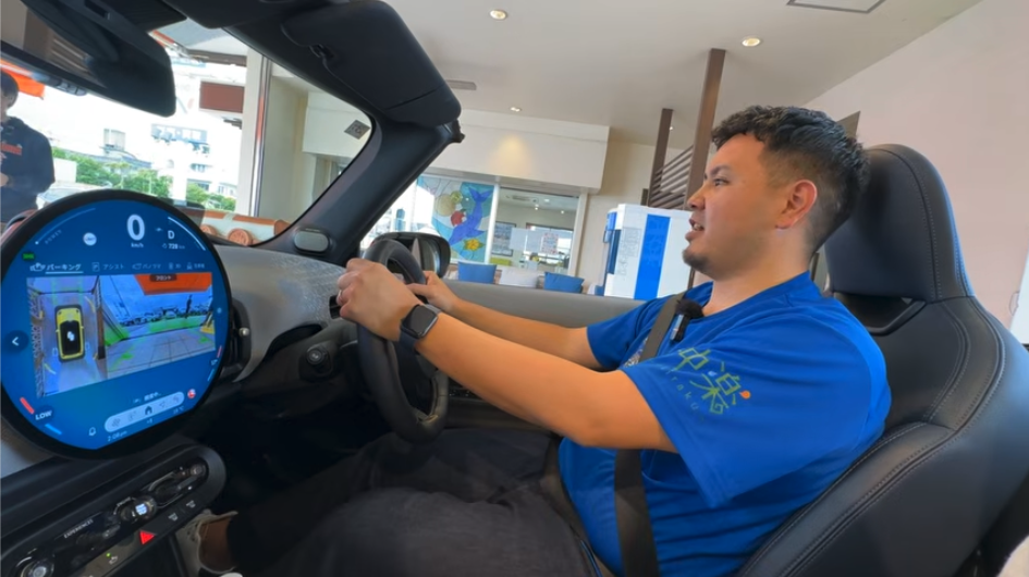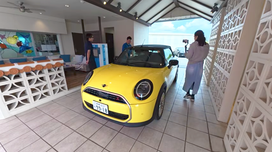 よな太郎さんとひーとーさんも「足元が広くて快適!」「外の景色と一体になれる感覚が最高!」と大興奮。瀬長島の青い海と、イエローのミニクーパーのコントラストは写真映えも抜群でした。