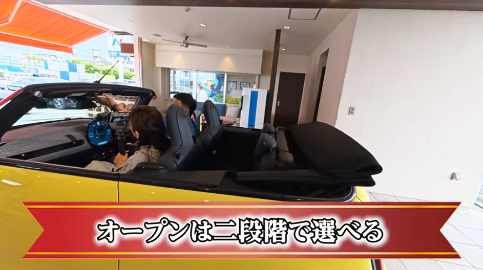 今回、よな太郎さんとひーとーさんが実際にレンタルしたのは、鮮やかなイエローの「NEW MINI COOPER CONVERTIBLE」。