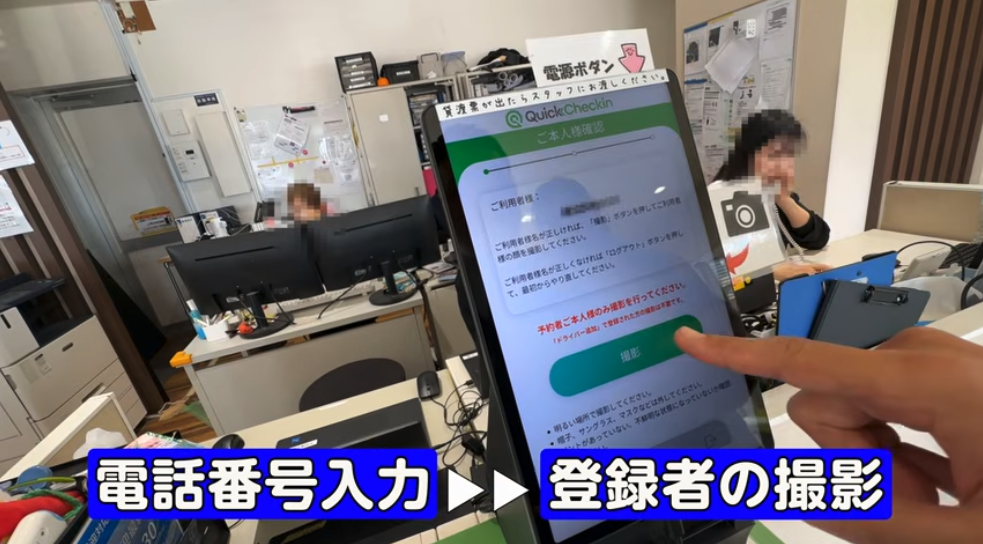 事前にネットで免許証登録などを済ませておけば、店頭ではタブレット端末で顔認証とサインをするだけ。わずか数分で出発できるスムーズさは、まさに最新のシステムです。