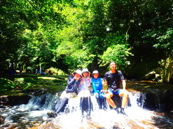 ジャングルの奥深くにそびえるピナイサーラの滝の全景が見えたら、誰もが歓声をあげるでしょう。沖縄県一の落差を誇るピナイサーラの滝の姿は神々しくもあります。 暑い日はライフジャケットを着たまま滝つぼにプカプカ浮かんだり、飛び込んだり、滝つぼ遊びを満喫しましょう。 小腹が空いたら甘いもので一息つきます。 |