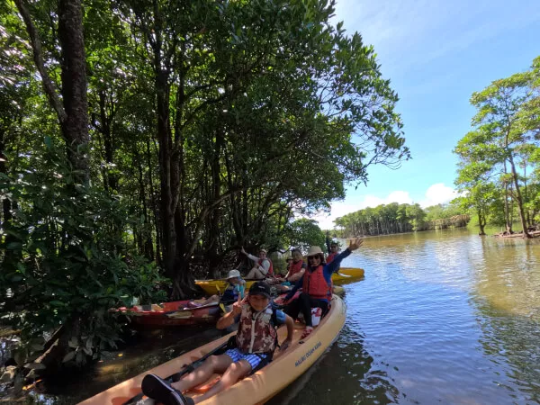 沖縄本島北部『億首川』沖縄県カヤック・カヌー協会公認ガイドと行く・マングローブ林→海→ローカルビーチ上陸・3歳から3世代家族、初心者でも2度目の参加でも楽しめるサステナブル・ネイチャーツアー・GoPro無料撮影付