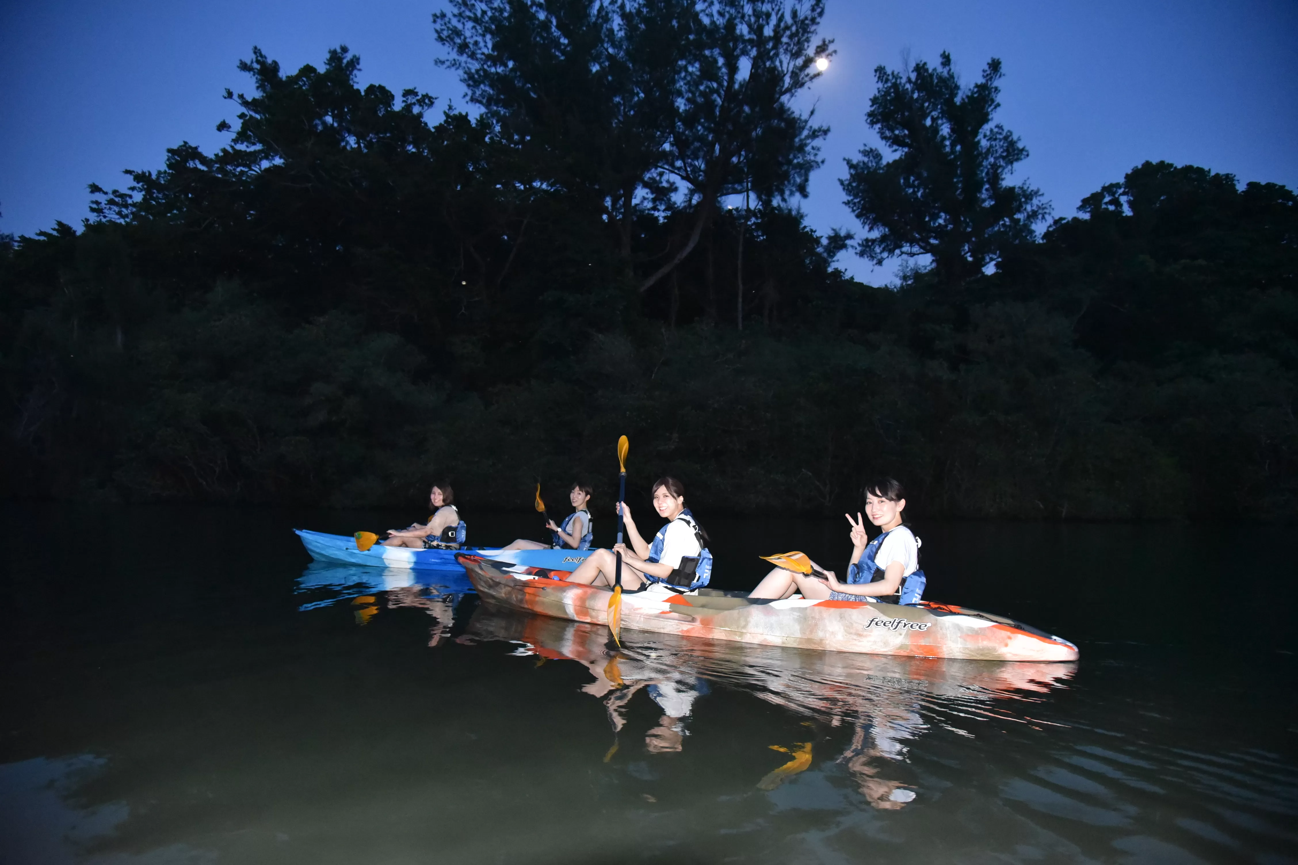 沖縄本島中部『比謝川(ひじゃがわ)』ナイトカヤックツアー【約2時間・2歳以上・8.9月限定開催】★割引プラン多数有