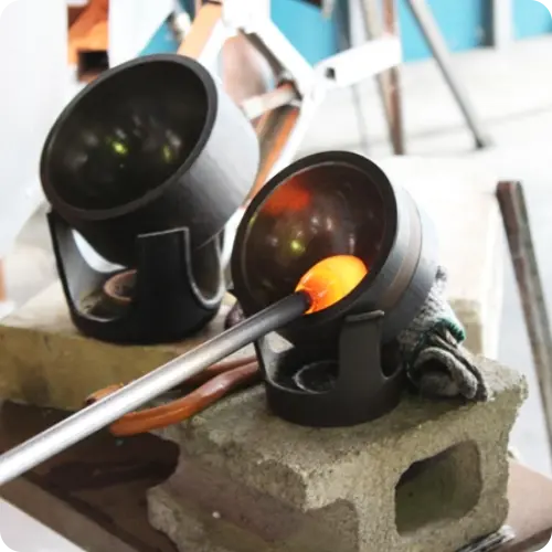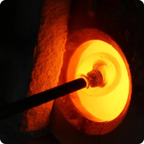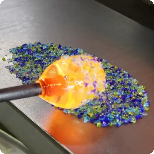 溶けたガラスを丸い形に整えます。 -