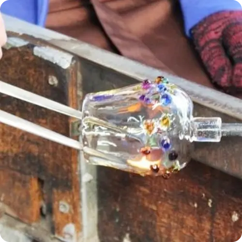 コーラやビールの空き瓶など雑多な材料を再生して利用する過程で現れた多様な彩りや気泡が現在の独特の味わいにつながっていると言われており、そこから創意工夫によって様々な商品が生み出されています。