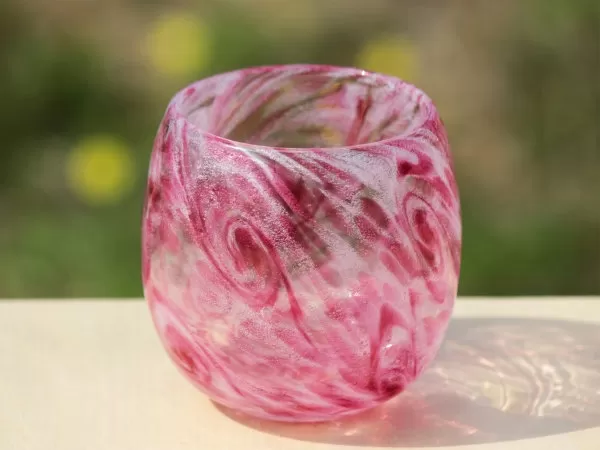 恩納村近く「琉球ガラス体験・たるグラス作り(柄:せせらぎ赤系2色)」★石川IC約3分【約10~15分・6歳以上・1名可・当日電話申込可】