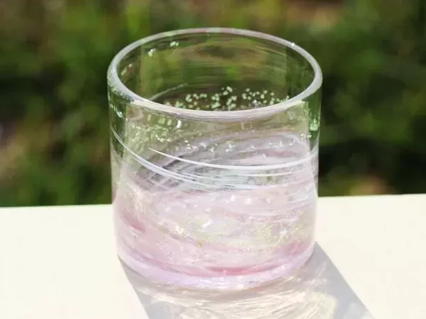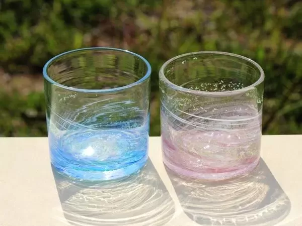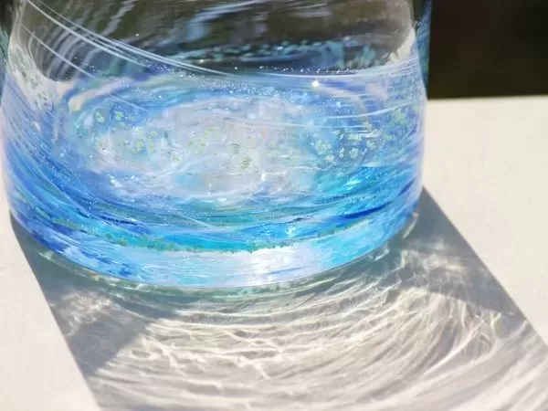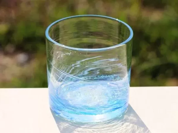 恩納村近く「琉球ガラス体験・ロックグラス作り(柄:さざ波/蓄光入り)」★石川IC約3分【約10~15分・6歳以上・1名可・当日電話申込可】
