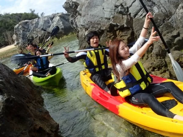宜野座マリンスポーツ『シーカヤック』★無人浜へ上陸!【宜野座村開催・約2時間・2歳以上・2名~・写真データ付き・BBQオプション有・当日電話申込可】