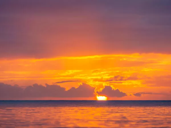 海までの距離感、島ならではの雲の低さ、雄大な太陽など、