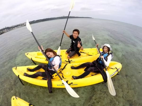 沖縄青の洞窟『シュノーケル』&『体験ダイビング』&『シーカヤック』1日満喫プラン【店舗集合・約6時間・12歳以上・水中写真データ無料】