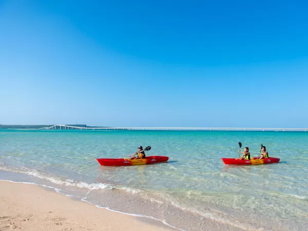 カヤックで間近から眺める伊良部大橋は迫力満点!大興奮すること間違いなし!運が良ければ、ウミガメにも会えることも。
