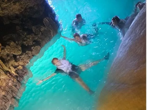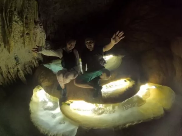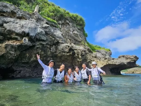 干潮の時にだけ姿を現す、幻の鍾乳洞へカヤックでアクセスする「パンプキンホール」探検。パンプキンホールの由来は、鍾乳洞に入ると、カボチャの形をした世にも珍しい鍾乳石があることです。鍾乳洞の中を全身を使って登ったり降りたりしながら神秘の洞窟を心ゆくまで楽しめます。ツアーの後は、すぐ横にある、夏でも冷たい気持ちいい湧き水のプールでのんびり。この湧き水プールを自由に使えるのは、このツアーだけ!おいしいご飯も食べられるよ。