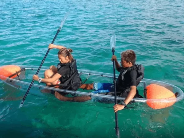 透明な素材でできたカヤックです。カヤックに乗ったまま可愛らしい熱帯魚や、サンゴ等、海の中の様子を観察することが出来ます。