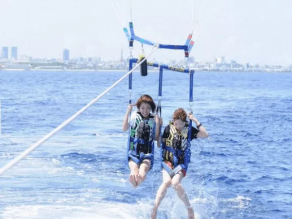 那覇発パラセーリング【空港から車で約10分・飛行時間約6~8分・6歳以上・2名~・GoProレンタル無料&撮影データ付き】