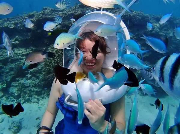 恩納村周辺 シーウォーク★3月-9月開催【許田IC約2分・名護ウィードビーチ開催・約1時間半・8歳以上・2名~・餌付け体験★当日電話申込可】