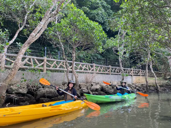 沖縄でも珍しいマングローブ群生地でのリバーカヤック体験を、家族、カップル、ご友人とお楽しみください。特にお子さまの自由研究にも最適です♪ツアー画像無料プレゼント!