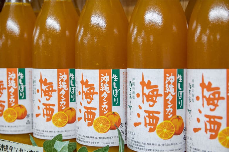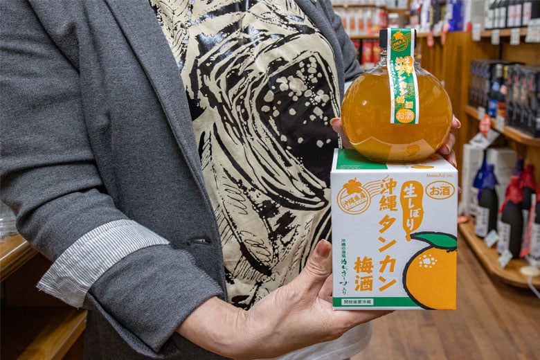 「生しぼり沖縄タンカン梅酒」は、本部町伊豆味の沖縄タンカンジュースと粗濾過・松藤、国産南高梅、沖縄の地釜炊き黒糖で仕込んだ梅酒をブレンド。