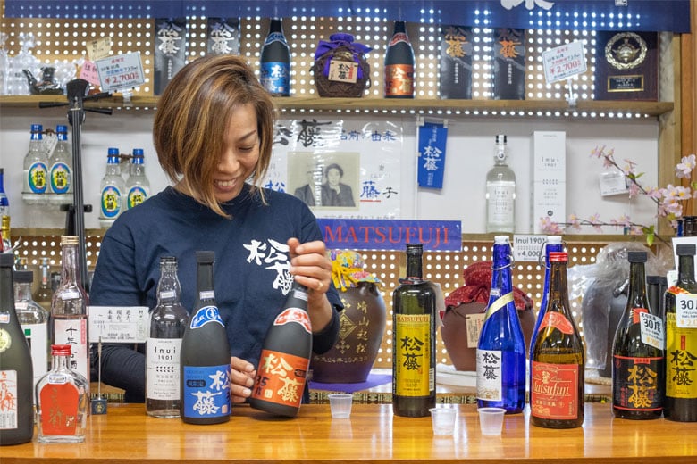 崎山酒造廠の女将(専務取締役の崎山 淳子さん)も「私も一番よく飲んでいます」と話し「赤の松藤はぜひ炭酸割りで味わってみてください」と話します。