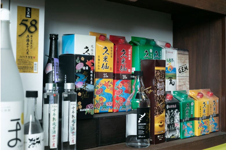 古酒を含む泡盛やウイスキー、「シークワーサーサワーの素」などリキュールも含め、たくさんのお酒を製造販売している久米仙酒造。