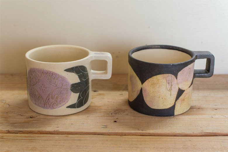 右のマグカップは、石ころがモチーフだそうです。