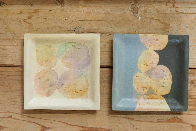 「薄い色を塗り重ねていくと透明感が出るんです。焼き上がりの色は偶発的に出るもので、なかなか意図して出せるものではありません。だからこそ思い通りの色が出たときはうれしいですね」と山城さんは話していました。
