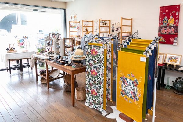 1階のショップで扱うのは、紅型・サンゴ染め商品。