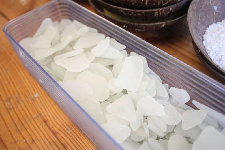 ガラス瓶などが砕け、長い年月をかけて波や海底に揉まれて角が丸くなっているのが特徴です。